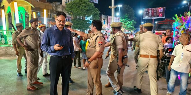 संतकबीरनगर जिलाधिकारी आलोक कुमार व पुलिस अधीक्षक संदीप कुमार मीना द्वारा संयुक्तरुप से दुर्गापूजा / दशहरा त्योहार के दृष्टिगत थाना कोतवाली खलीलाबाद क्षेत्रान्तर्गत मधुकुंन्ज तिराहा पर जनता मे सुरक्षा भावना को बढ़ाने के लिए मय पुलिस बल के साथ पैदल गश्त किया गया । गश्त के दौरान आम नागरिक से सीधा संवाद स्थापित कर उनको सुरक्षा का भरोसा दिलाया गया तथा त्योहार के दौरान गड़बड़ी पैदा करने वालों के विरुद्ध कड़ी कार्यवाही हेतु सख्त हिदायत दिया गया तथा उपस्थित लोगों को भाईचारे के साथ त्योहार मनाने तथा त्योहार को सकुशल संपन्न कराए जाने हेतु अपील किया गया । किसी भी समस्या अथवा शिकायत की दशा में तत्काल प्रशासन / पुलिस प्रशासन को सूचित करने की भी अपील की गई । साथ ही यह भी अपील किया गया कि सोशल मीडिया पर पोस्ट की गयी किसी भी अफवाहों अथवा भ्रामक टिप्पणी आदि पर ध्यान न दे, सबसे पहले प्रशासन अथवा पुलिस को इसी सूचना दें, सत्यता की जांच करे और किसी भी समस्या अथवा अराजकतत्वों से निपटने में पुलिस व प्रशासन का सहयोग करें गश्त के उपरान्त मेला क्षेत्र में भीड़-भीड़ के नियंत्रण हेतु मेला क्षेत्र में प्रभारी निरीक्षक थाना कोतवाली खलीलाबाद को प्रयाप्त पुलिस बल की डियूटी लगाने हेतु निर्देशित किया गया साथ ही मेला क्षेत्र में महिला आरक्षीयों की डियूटी सादे वस्त्र में भ्रमण हेतु निर्देशित किया गया व यातायात व्यवस्था हेतु प्रभारी यातायात को यातायात व्यवस्था सुनिश्चित करने हेतु निर्देशित किया गया इस दौरान प्रभारी निरीक्षक थाना कोतवाली खलीलाबाद पंकज कुमार पाण्डेय, प्रभारी यातायात परमहंस, पीआरओ पुलिस अधीक्षक दुर्गेश पाण्डेय सहित अन्य अधिकारी/कर्मचारीगण मौजूद रहे ।