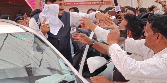 बुरहानपुर, मध्य प्रदेश मुख्यमंत्री डॉ. मोहन यादव का बुरहानपुर आगमन हुआ जिसमें उन्होंने रोड शो के बाद 696 करोड रुपए की विकास कार्य का भूमि पूजन किया। नेहरू स्टेडियम पर मुख्यमंत्री डॉ. मोहन यादव क़े कार्यक्रम के बाद