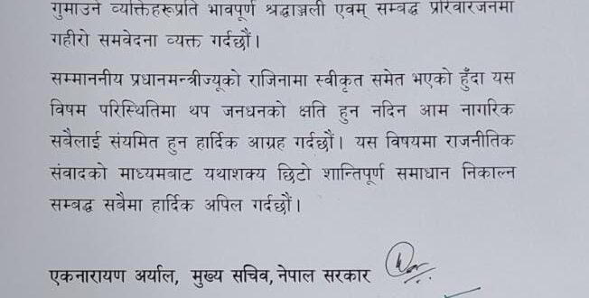 ओली ने छोड़ा सरकारी आवास, सेना और सरकार की शांति की अपील।